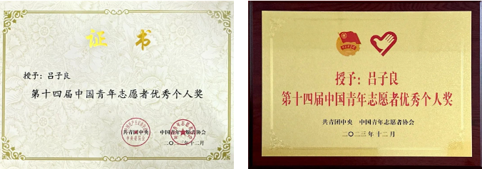 近日,共青团中央、中国青年志愿者协会对全国志愿服务先进典型进行表彰,我校外围买球的app十大平台2023级硕士研究生吕子良荣获“中国青年志愿者优秀个人奖”(全国260人,北京市仅13人),是唯一获此荣誉的北京市大学生。