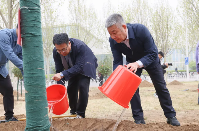 春回大地,草木逢春,植树播绿正当时。4月12日上午,党委书记赵长禄,校长王云鹏,党委副书记、纪委书记何新洲,副校长刘树春,党委副书记程波,副校长吕卫锋,党委副书记杨立军,副校长赵巍胜、吕金虎、邓怡等一行来到沙河校区八号楼东侧绿地,和师生一同开展义务植树活动,共同为沙河校区植树添绿。