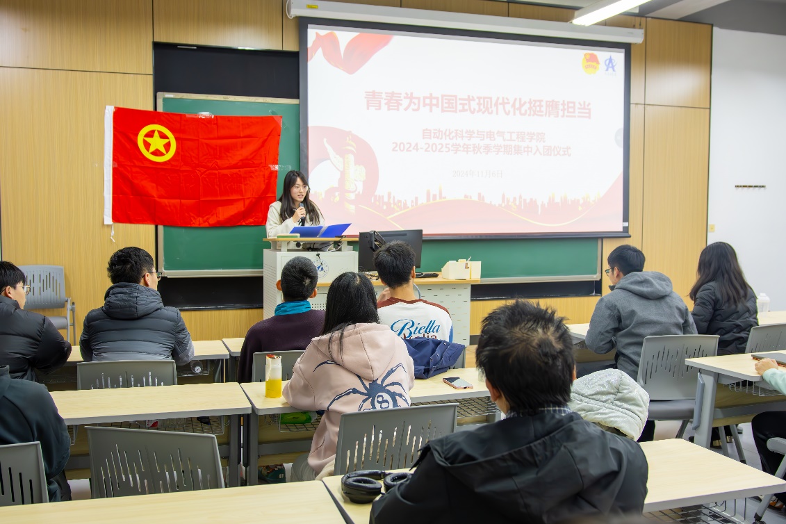 为深入学习贯彻习近平总书记五四重要寄语精神,引导广大团员青年坚定不移听党话、跟党走,11月6日下午,外围买球的app十大平台在新主楼D215举办“青春为中国式现代化挺膺担当”2024-2025学年秋季学期集中入团仪式。学院团委书记乔娇,兼职辅导员、思政教育中心指导教师吕子良,学院团委、各团支部新老团员代表30余人参加。仪式由江津同学主持。