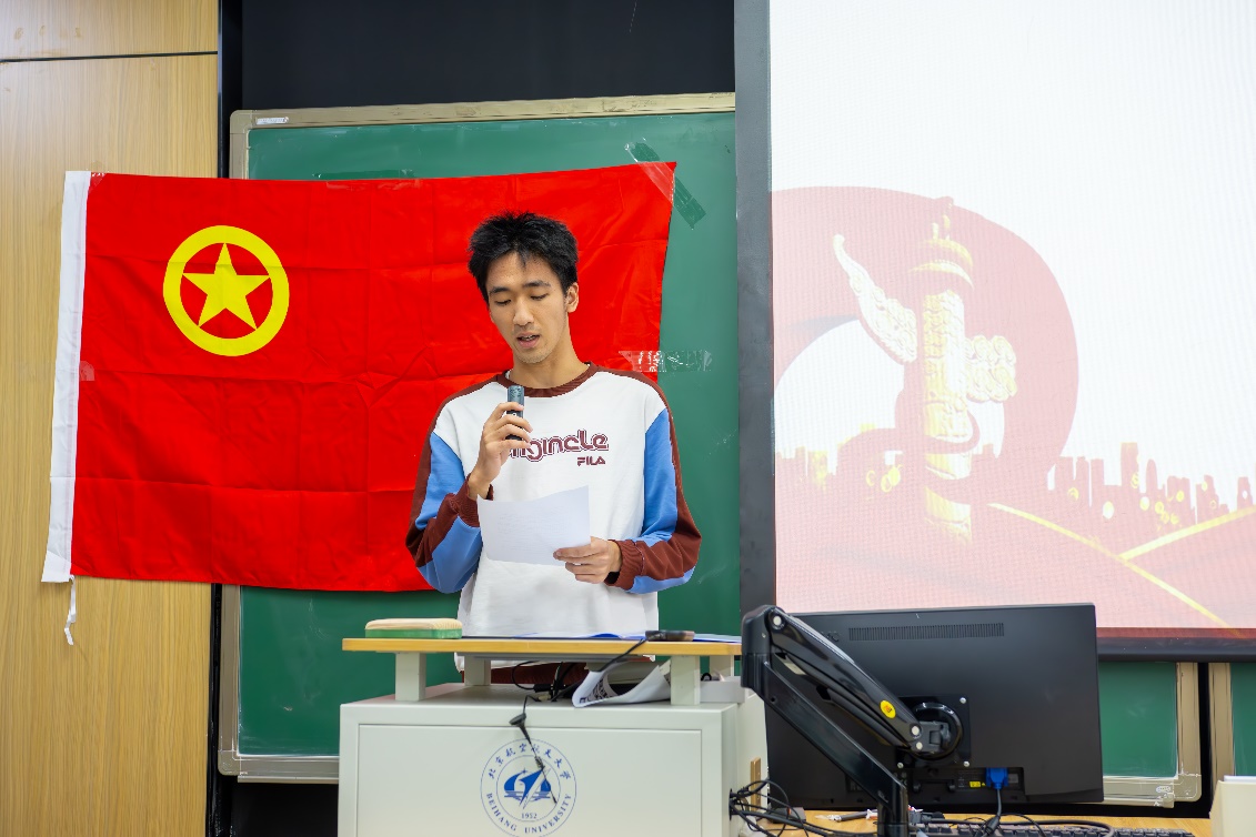 随后,优秀团员代表张烁祎同学发言,鼓励大家树立正确的价值观,勇于创新,将个人理想与国家发展结合,传承北航“空天报国”精神,为实现中国式现代化、复兴中华民族而努力奋斗。