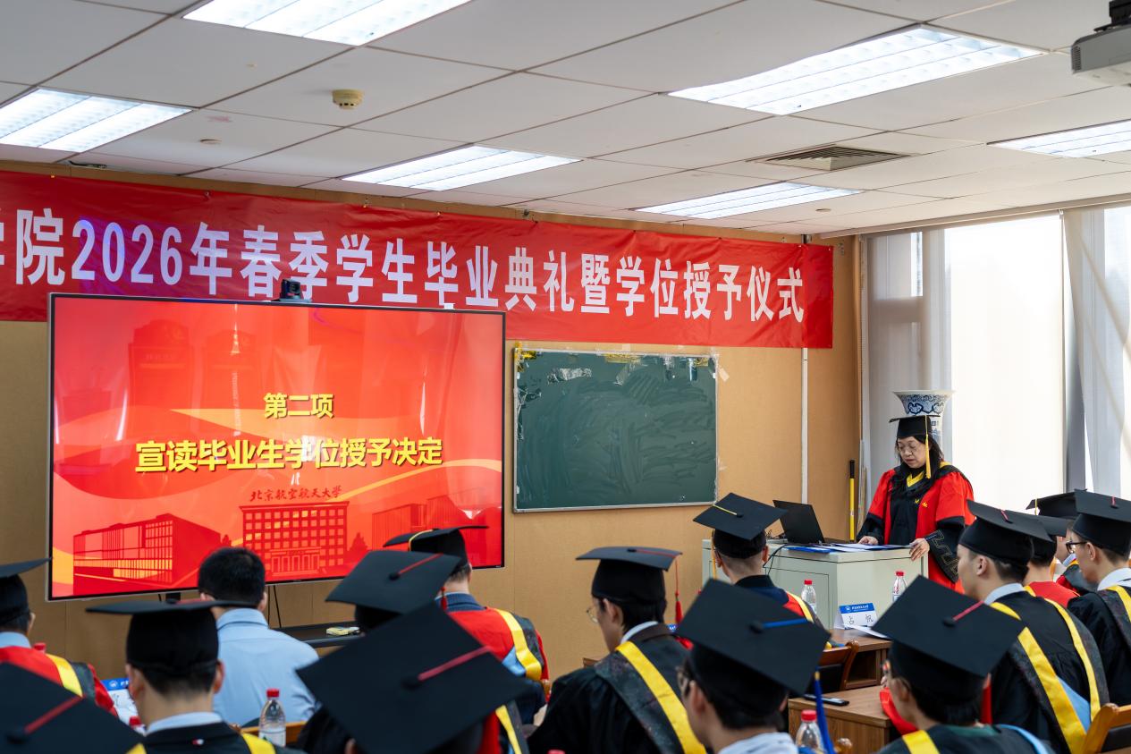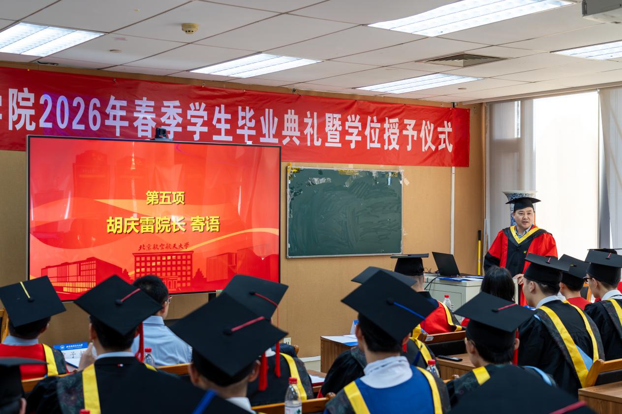(通讯员 娄锦昊 乔娇/摄影 郄家润)2026年1月5日下午15:00,外围买球的app十大平台于学院路校区新主楼E706会议室举行2026年春季研究生毕业典礼暨学位授予仪式。学院院长胡庆雷、党委书记郑征、党委副书记贾子超,副院长王薇、王兴坚、占帆,党委委员张海、院长助理张超,专兼职辅导员和硕士生、博士生共30余位毕业生代表及亲友出席典礼。典礼由团委书记乔娇主持。