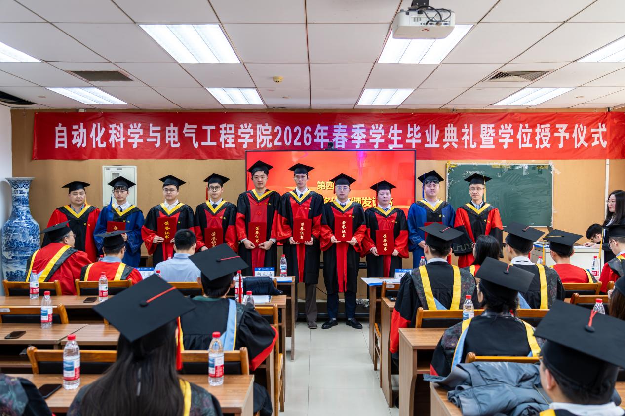 在热烈的掌声中,胡庆雷院长深情寄语毕业生。他代表外围买球的app十大平台全体师生员工向圆满完成学业的25名博士生和7名硕士生表示热烈祝贺,并向悉心指导的导师和默默支持的亲友致以衷心感谢。胡院长回顾了“十四五”期间学院取得的辉煌成就,指出这些成绩的取得,离不开每一位师生的辛勤付出,更凝聚着同学们的青春力量。临别之际,胡院长提出三点期望:第一,以心为舵,向国而行,将个人理想微光汇入强国建设星河,让人生价值在为国奉献中熠熠生辉;第二,以实为基,向高而攀,在脚踏实地中练就过硬本领;第三,以闯为翼,向新而生,传承北航“敢为人先”的基因和学院院训,在智能科技前沿开拓新赛道。最后,他深情表示学院永远是同学们的“精神港湾”,并预祝毕业生及家人马年快乐,前程似锦!