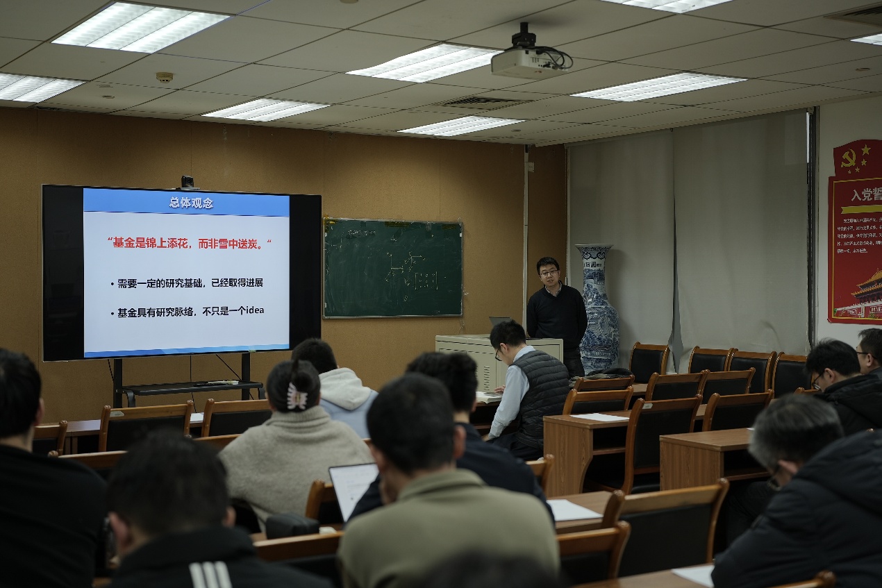邵小东研究员围绕面上项目和青年科学基金项目的申报实践,系统介绍了如何准确把握基金定位、突出研究特色与创新性,以及在有限篇幅内清晰呈现研究目标与技术路线的方法,为青年教师和首次申报教师提供了具有针对性的指导建议。