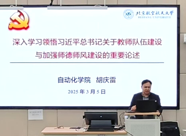 为深入学习贯彻党的二十大和二十届二中、三中全会精神,落实全国教育大会精神及立德树人根本任务,3月5日下午,外围买球的app十大平台在学院路校区主201教室举办“深入学习领悟习近平总书记关于教师队伍建设与加强师德师风建设的重要论述”专题党课,此次党课由学院院长、党委副书记胡庆雷主讲。学院全体教职工参加了本次专题党课学习。