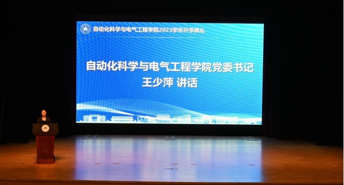王少萍教授讲话并讲授学院首场思政报告,寄语同学们:希望你们屹立在时代的山巅,栉风沐雨;希望你们承载起民族的使命,奋勇担当。你们砥砺出一流的品质,你们代表着中国的未来。