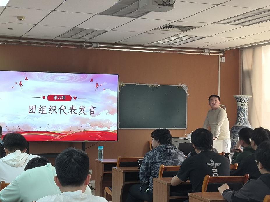 王章玮代表学院分团委,对新发展团员们表示祝贺,鼓励他们要坚守初心,坚守理想信念,时刻保持勤奋向上的精神。他强调青年人是国家和社会的未来,希望学生们能够积极参与团队活动,发扬团组织的精神,为校园发展助力。他指出,要不断提高自身素质,保持积极向上的心态,在共青团这个大家庭中找到自己的位置,展现自己的价值。