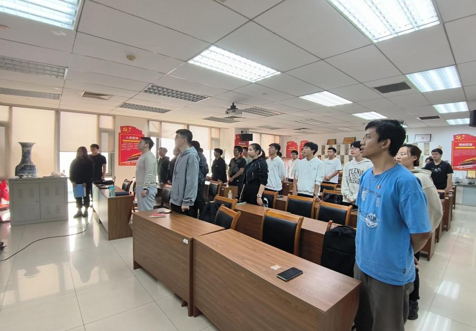 本次入团仪式在庄严的国歌声中拉开序幕,参会人员全体起立,奏唱国歌。会议主持人潘亦蒙同学宣读2023年度发展团员名单。