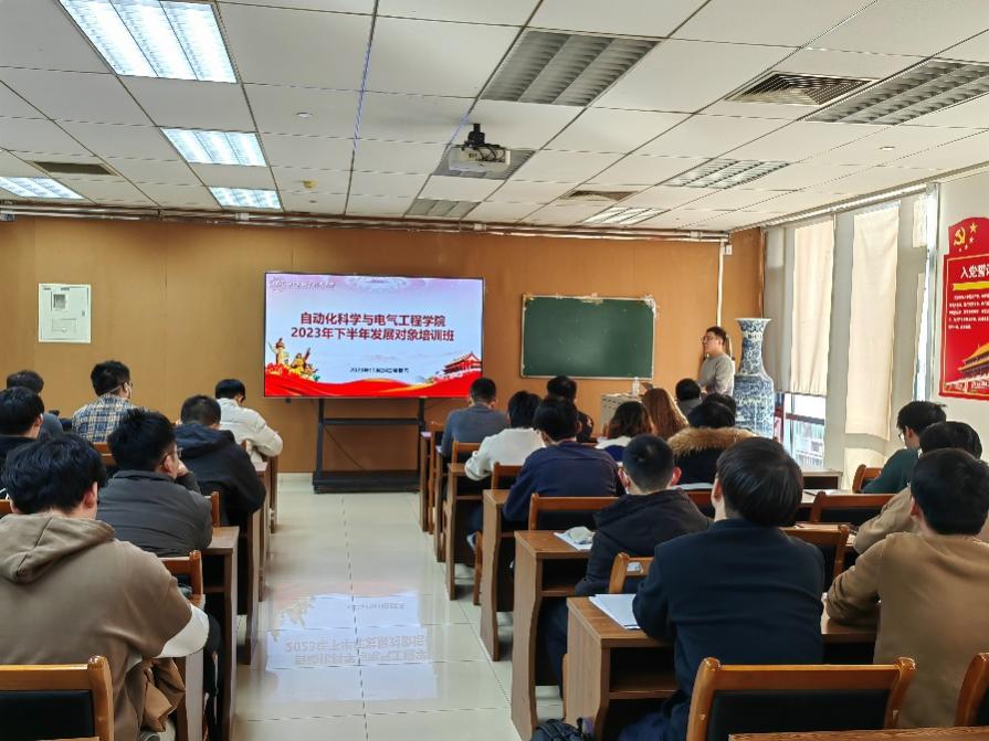 11月24日下午,外围买球的app十大平台在新主楼E706开展2023年下半年党员发展对象集中培训。本次培训邀请了北京航空航天大学研究生宣讲团讲师周志睿作主题宣讲,学院各学生党支部书记、11月新确立的所有发展对象参加,学院思政中心主任、党建辅导员程鸿博主持。