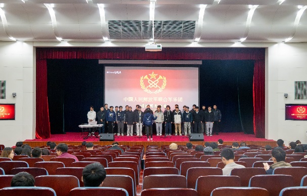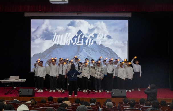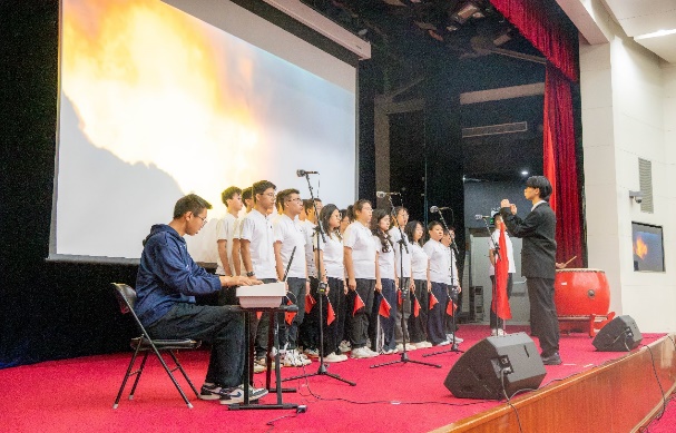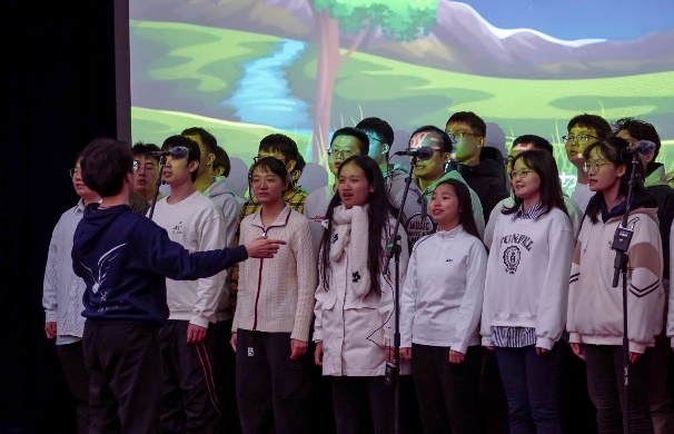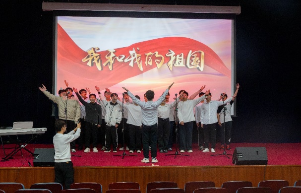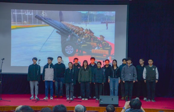 比赛过程中,18支参赛队伍轮番登场,用歌声诠释青春与理想,所选曲目涵盖经典爱国歌曲、流行励志佳作等多元类型。灯光映照着每位演唱者专注的神情,各声部相互配合、彼此呼应,从激昂的《少年中国说》到深情的《我爱你中国》,从温暖的《世界赠予我的》到坚定的《强军战歌》,参赛队伍演唱的每一个音符都深深触动着观众的心弦。同学们在演唱中融入真情实感,部分班级还通过整齐的肢体动作、饱满的精神面貌增强舞台表现力,让合唱节目更具观赏性。