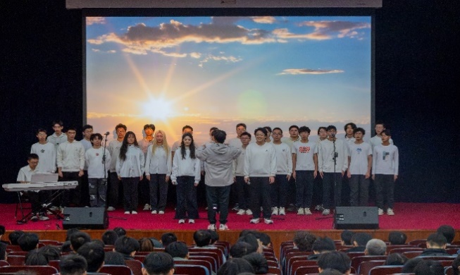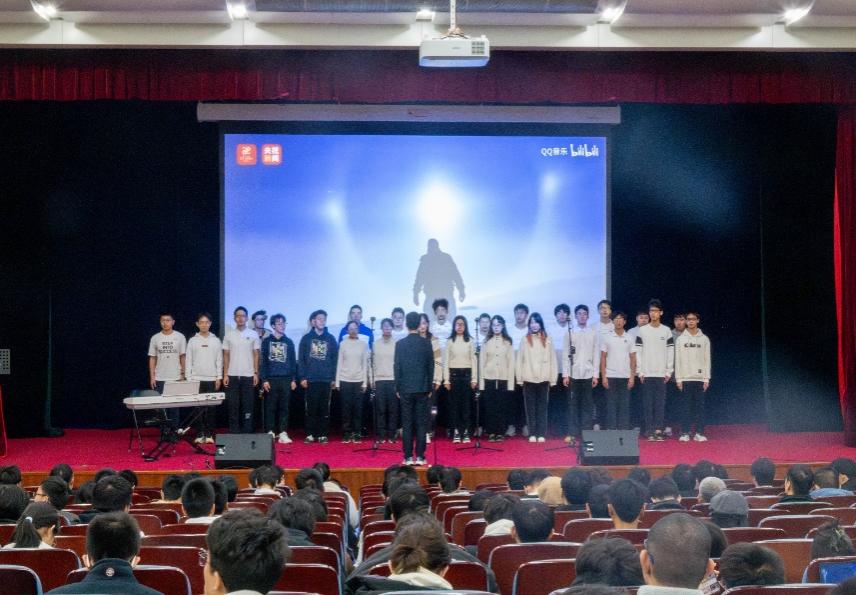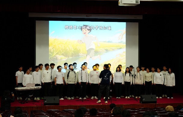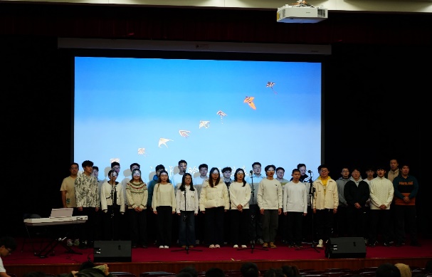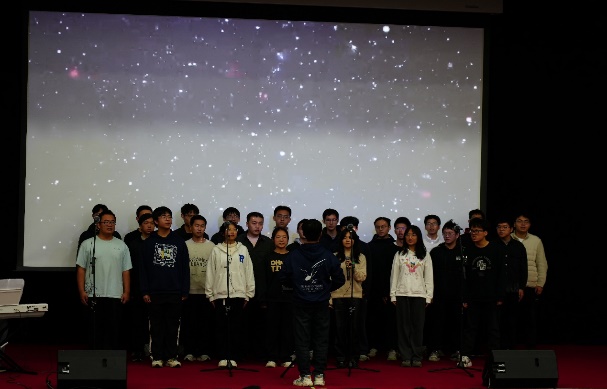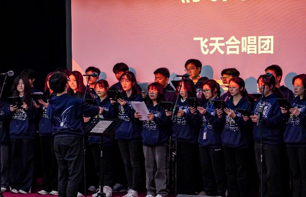 参赛班级演唱赛程告一段落后,学院飞天合唱团作为此次比赛的特邀嘉宾,为现场观众带来《我喜欢》《我们都是追梦人》两首合唱曲目。成立于1998年的飞天合唱团,至今已有26年历史,曾多次参加国内外演出活动与合唱赛事并斩获优异成绩。此次表演中,合唱团成员以专业的演唱技巧、默契的声部配合,搭建起跨越年龄与学段的情感交流桥梁,让所有观众为之沉醉与感动。