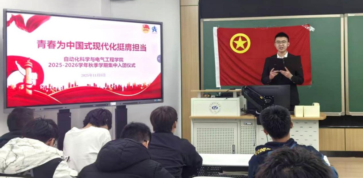 乔娇代表学院团委对新入团的团员表示祝贺,并以“自动控制系统”做比喻,对团员青年提出殷切希望。她表示,共青团员要坚定理想信念,深入学习贯彻党的二十大和二十届历次全会精神,把个人理想融入民族复兴伟业;要扎实学习科研,珍惜大学时光,勤奋努力学习,在科研创新的道路上勇于探索、攻坚克难;要勇于担当奉献,积极参与志愿服务、社会实践,在服务集体、奉献社会中彰显团员先进性,在强国建设、民族复兴征程上书写青春答卷。