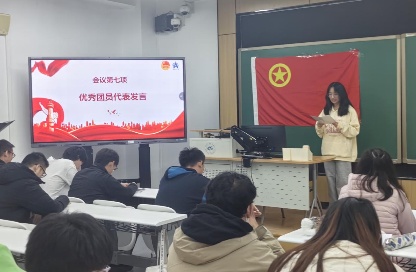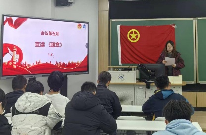 入团介绍人代表王星蕴同学宣读《团章》中有关义务和权利的条款。新团员代表武志杰同学表达了加入共青团的自豪,表示应以信念为舵,筑牢思想根基,以行动为笔,书写青春答卷,将个人理想融入民族复兴伟业,用实干担当在推进中国式现代化的征程中贡献青春力量。优秀团员代表姚丹霞同学表示青春的担当始于思想坚定、基于过硬本领、成于服务实践,激励新团员们要以思想为帆、学识为桨、实践为舟,在中国式现代化浪潮中勇担时代之责,争做奔涌在担当路上的先锋力量。