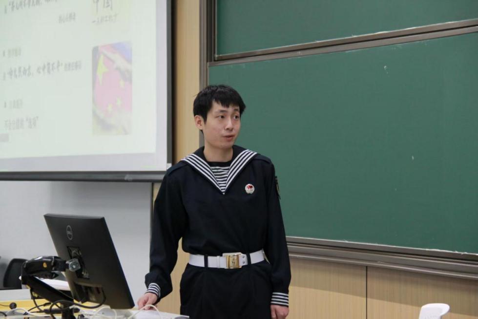 宣讲现场,钱景昊同学以亲身军旅经历为脉络,用真挚的情感、生动的细节,深情回溯了自己的入伍初心与海军军营岁月。怀揣着对祖国的赤诚与对军旅的向往,他于2022年毅然投身中国人民解放军海军队伍,将青春热血挥洒在蓝色海疆。服役期间,他始终以高标准严格要求自己,在高强度训练中刻苦钻研、奋勇争先,不仅成功斩获3000米跑步项目银牌,更凭借优异表现荣获“四有”优秀士兵嘉奖,用汗水与实绩生动诠释了新时代军人“听党指挥、能打胜仗、作风优良”的使命担当。